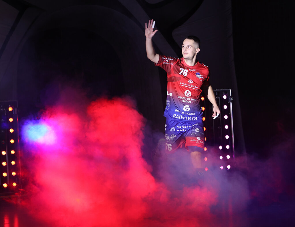 Vanja Sehic, Topscorer der HSG Baden-Endingen, beantwortet nach dem Meisterschaftsspiel gegen den BSV Stans Fragen zum Spiel. Sehic gelingen 11 Tore aus 15 Versuchen, vier davon auf Siebenmeter.
