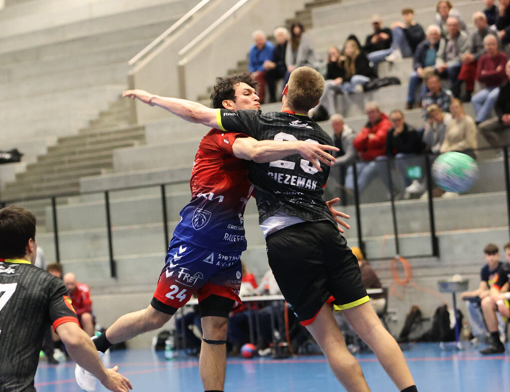 Nach dem Seitenwechsel erwischten die Gastgeber den besseren Start. Mit vier Treffern in Serie – je zweimal durch Juric und Bühler – setzte sich Baden-Endingen erstmals auf 22:18 ab (35.). Doch Möhlin reagierte, glich rund zehn Minuten später durch Legionär Grandi wieder aus. Das Derby blieb intensiv und umkämpft.