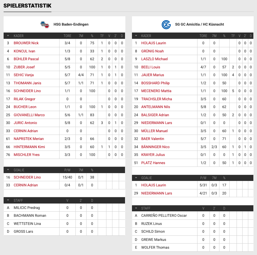 NLB: HSG Baden-Endingen – SG GC Amicitia / HC Küsnacht 44:29 (21:16)