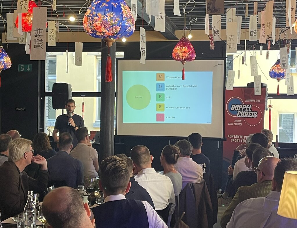 Ein Highlight war das Kurzreferat von Michael Kyburz (Beyonder AG, Gebenstorf). Mit eindrücklichen Live-Beispielen zeigte er, wie KI bereits heute ganz konkret im KMU-Alltag eingesetzt werden kann – praxisnah, verständlich und ohne Hype.