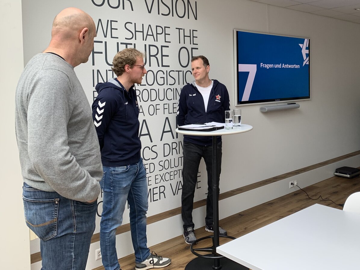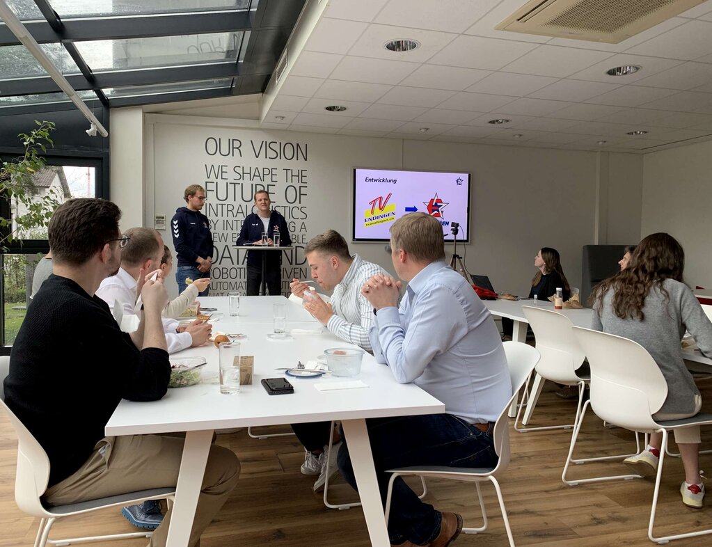 Der Geschäftsführer von Handball Endingen, Roger Küng, erzählte, wie die Integration von neuen Spielern, die Belastungssteuerung der Spieler, das Arbeiten mit Zielen, sowie die Analyse des Gegners bei einem ambitionierten Sportverein funktioniert. All diese Themen sind bei einem Unternehmen wie der Swisslog natürlich ebenfalls sehr präsent in Bezug auf ihre Mitbewerber. Unser Linkshänder im rechten Rückraum, Marco Giovanelli, verdeutlichte und ergänzte die Parallelen zur Wirtschaft mit seinen persönlichen Erfahrungen aus der Praxis.